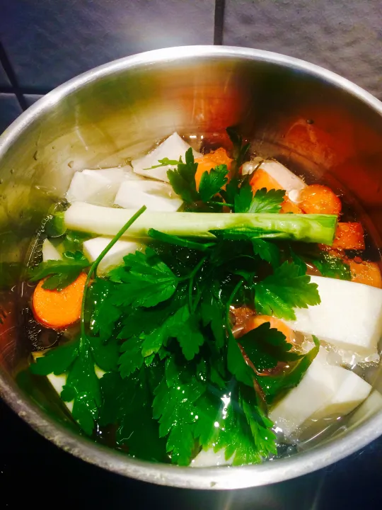 Alle Zutaten auf kleiner Flamme für etwa zwei Stunden köcheln lassen.