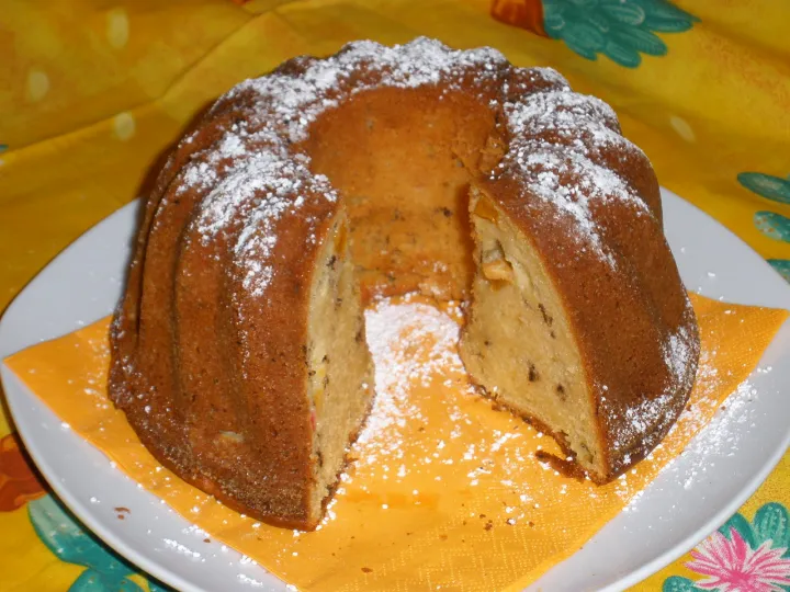 Mit der Mehlmischung gut vermengen und in eine gebutterte, bebröselte Gugelhupfform füllen.