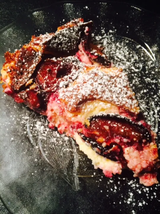 Masse in die Form füllen, mit dem Obst belegen und für ca. 60 Minuten backen.