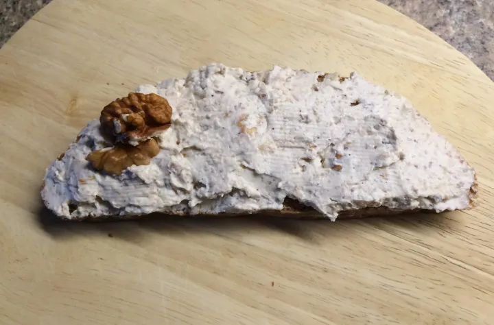 Zum Schluß Sauerrahm, Nüsse und Kren unter die Masse mengen.