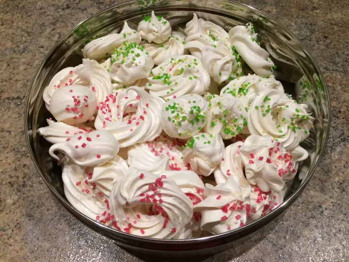 Das Eiklar zu steifem Schnee schlagen und den Feinkristallzucker einrieseln lassen. Nach und nach auch den Staubzucker zufügen und eine steife Masse schlagen.
